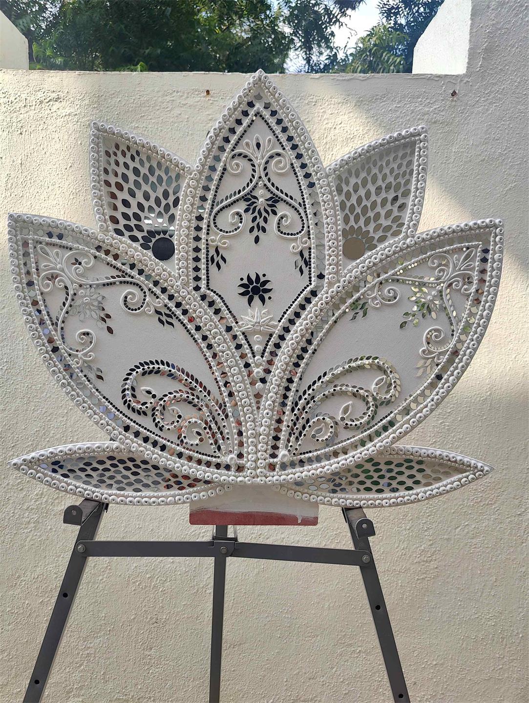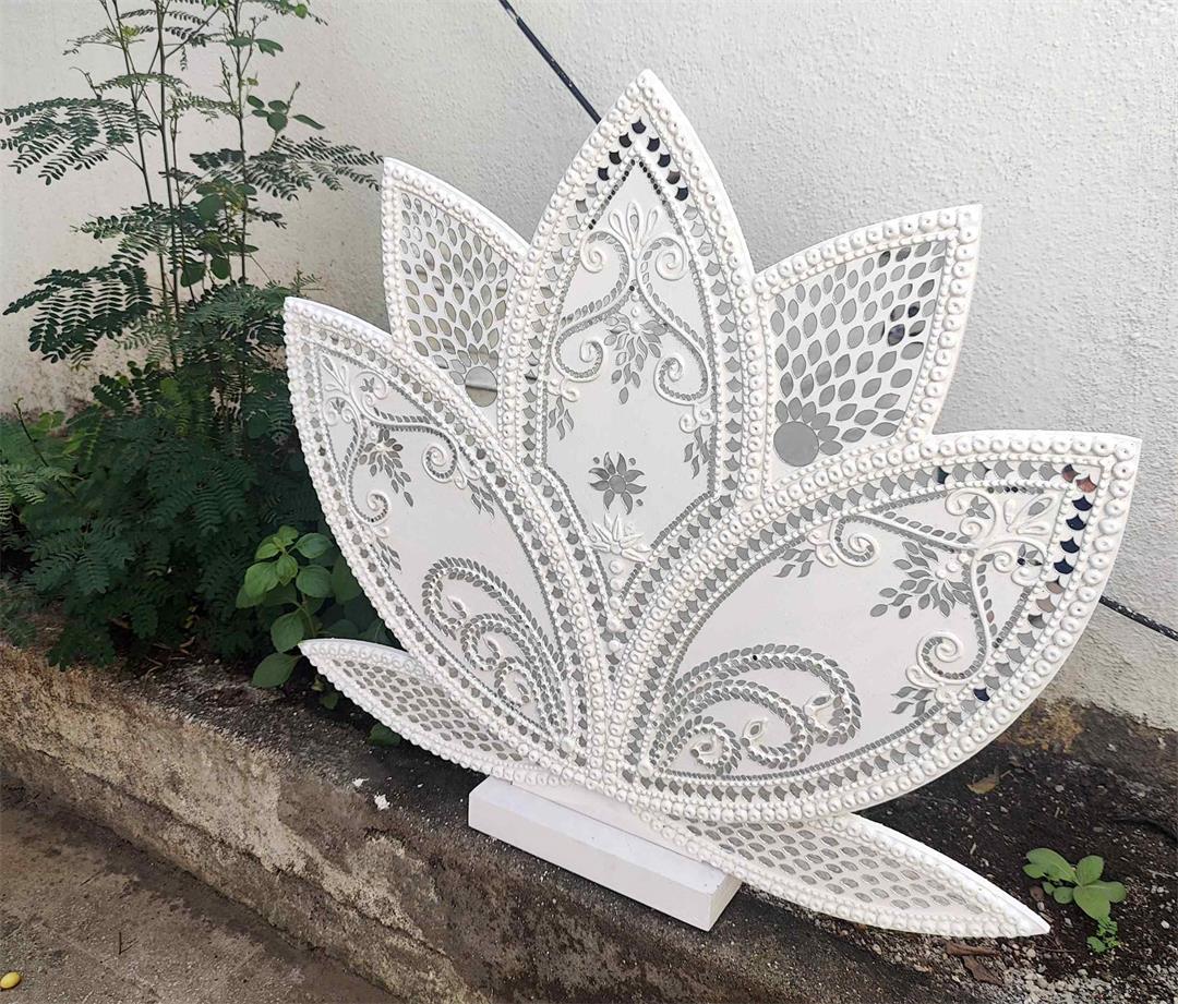 • The Lotus shaped cutout with lippan work looks very beautiful as backdrop for Ganeshji.. A must have for all Ganesh Festival Enthusiasts!!